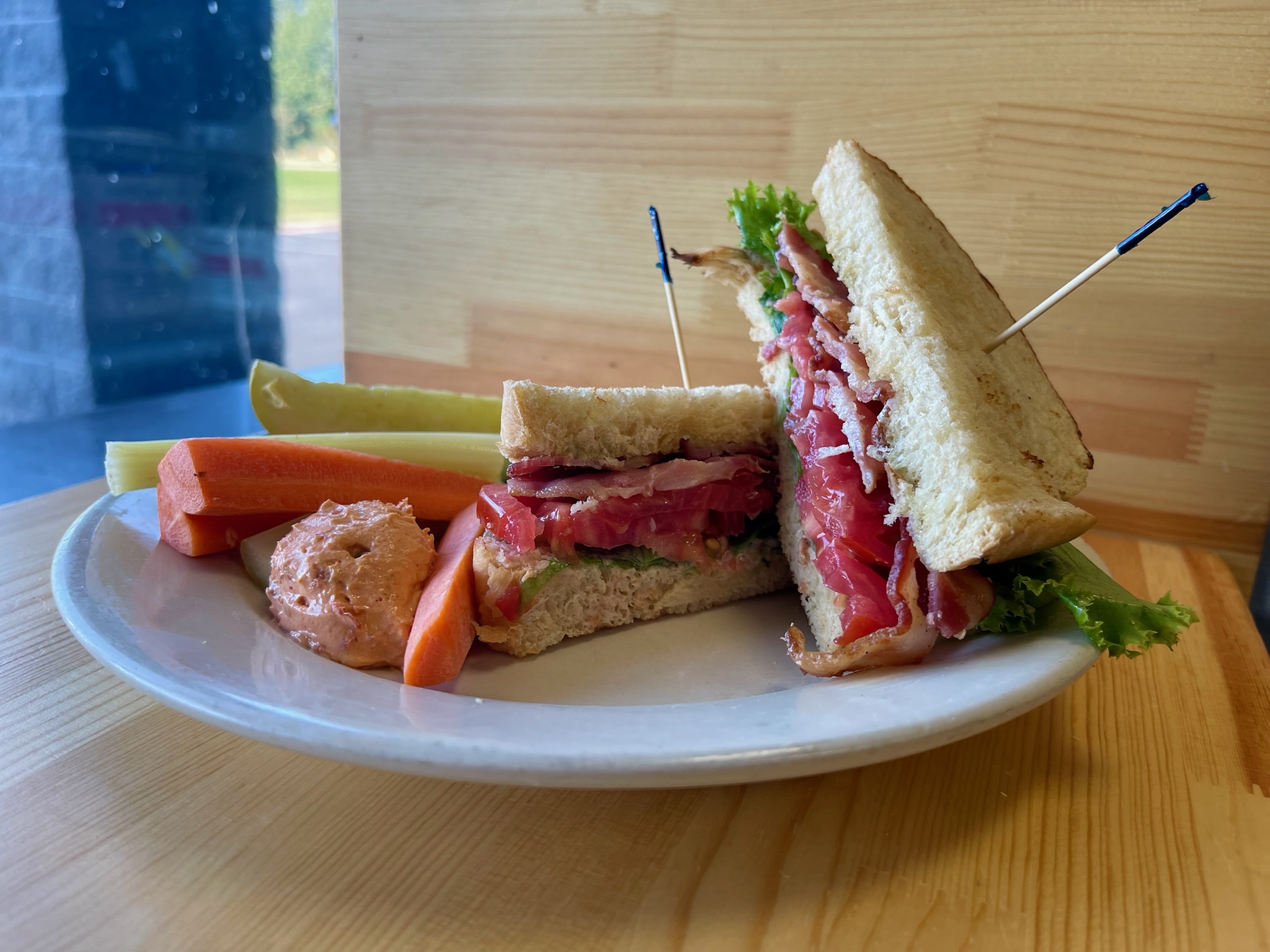 Honey White Brioche Bread, bacon, lettuce, and tomato with sage aioli
